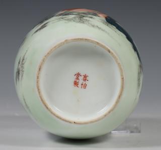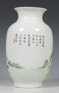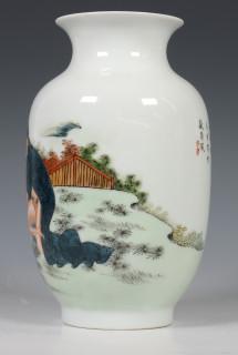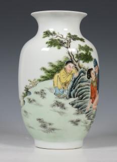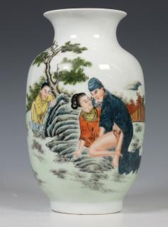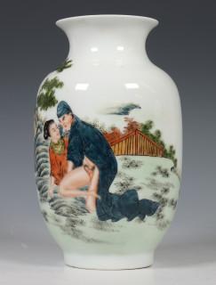 China, polychrome porcelain vase, modern, with erotic scene and calligraphy, with four-character mark, provenance: Dutch private collection