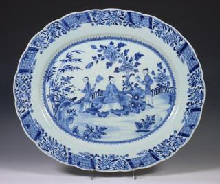 China, two blue and white porcelain serving dishes, Qianlong, one decorated with elegant ladies in an interior, the other with flowers, provenance: Dutch private collection