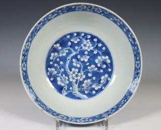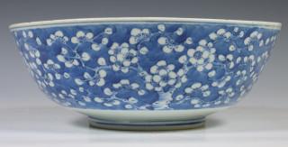 China, blauw-wit porseleinen 'prunus op ijs' kom, 19e eeuw,