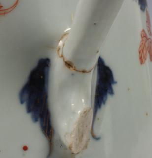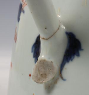 China, Imari porcelain coffee-pot and cover, 18th century, painted with chrysanthemum and bamboo (chips and hairline)