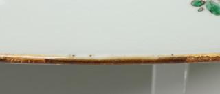gedecoreerd met bloemen, de rand met cartouches met bloemen en vogels (restauraties, haarlijn)
