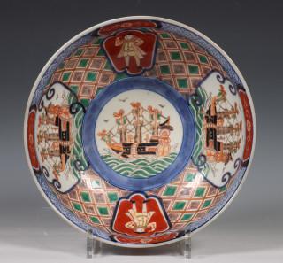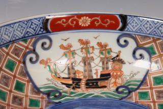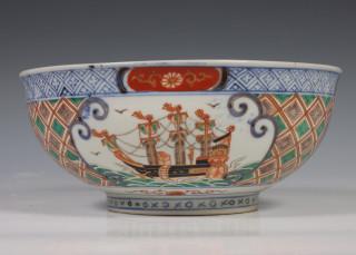 Japan, Imari porcelain Namban bowl, 19th century, decorated to the interior and exterior with Dutchmen en ships, provenance: Dutch private collection