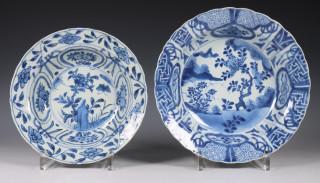 China, twee blauw-wit porseleinen schalen, Wanli en later,