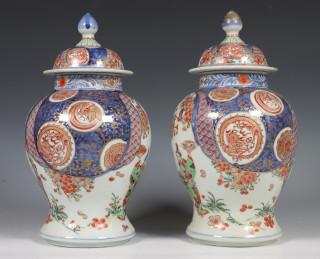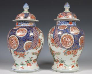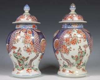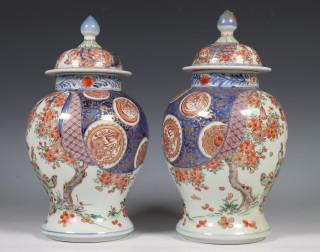 Japan, paar Imari porseleinen balustervazen en deksels, Meiji periode, 19e eeuw,