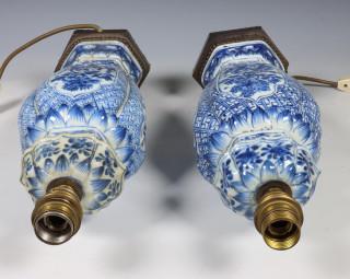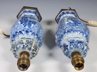 China, paar blauw-wit porselein vazen gemonteerd als lampen, Kangxi,