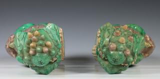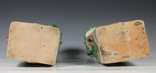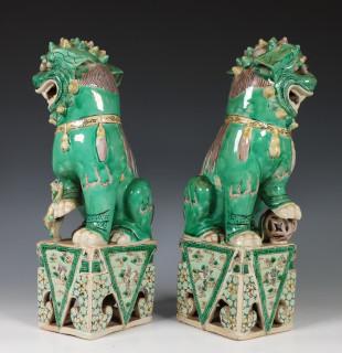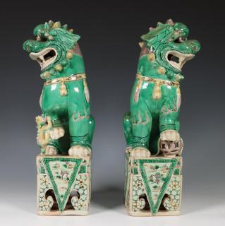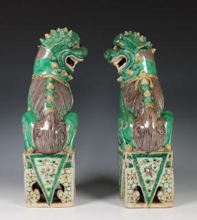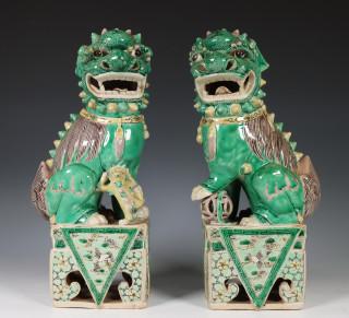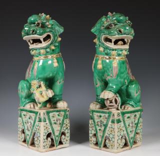 China, een paar famille verte biscuit boeddhistische leeuwen, Kangxi,