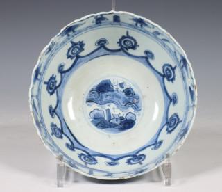 China, blauw-wit porseleinen kom, late Ming-dynastie,