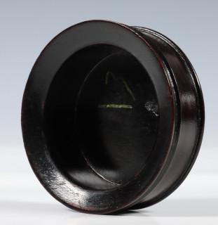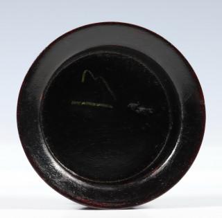 gedecoreerd met figuren op een brug in een rivierlandschap, apocrief Chenghua merk, met houten deksel (kleine randchip)