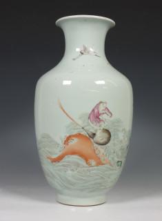 China, famille rose porseleinen 'Shoulao en Liu Hai' vaas, 19e/20e eeuw,
