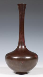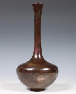 Japan, bruin gepatineerde bronzen steelvaas met reliëfdecor van karpers, Meiji periode,
