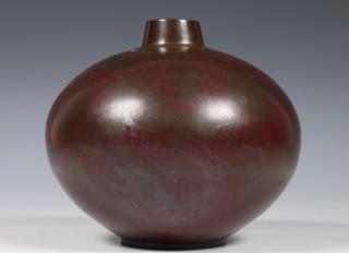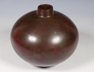 Japan, brown patinated bronze bulbous vase, with reddish brown patina, signed to base 'Makoto'