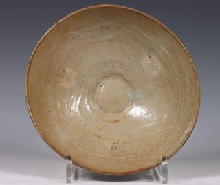 Korea, celadon earthenware slib-deocrated bowl, Goryeo dynasty, 12th-13th century, the interior inlaid with three flower-heads
