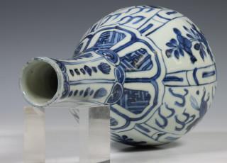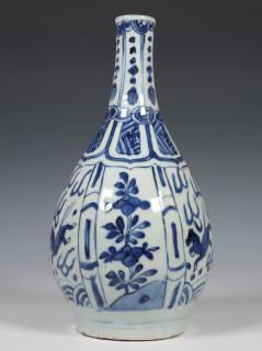 China, blauw-wit 'kraak' porseleinen fles, Wanli,