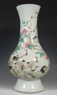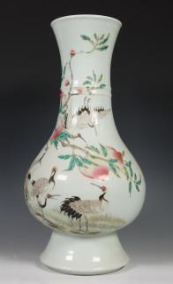 China, famille rose porseleinen 'kraanvogel en perzik' vaas, 20e eeuw,
