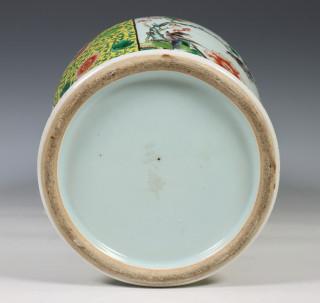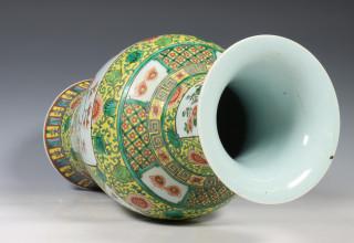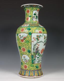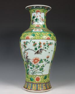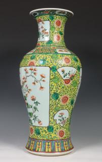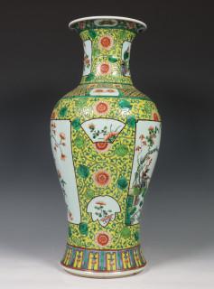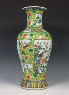 China, famille rose porseleinen geelgegronde balustervaas, 20e eeuw,