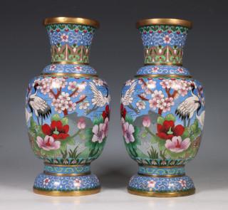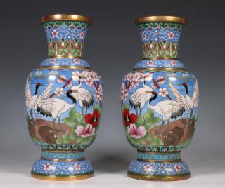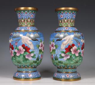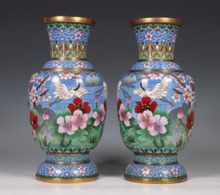 Japan, paar cloisonné geëmailleerde vazen, 20e eeuw,