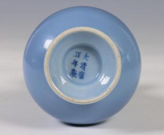 China, blauwgeglazuurd porseleinen vaasje, 20e eeuw,