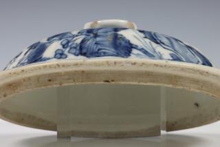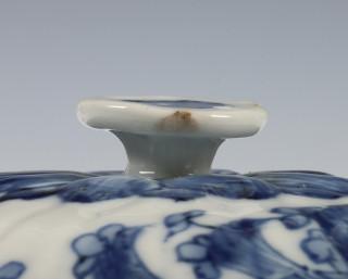 China, blauw-wit porseleinen geribd dekselkommetje, Kangxi,