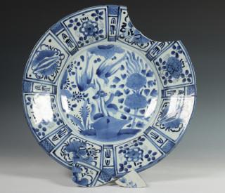 Japan, Arita blauw-wit porseleinen 'Kraak-stijl' schotel, Edo periode, laat 17e eeuw,