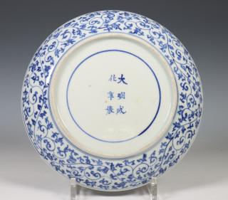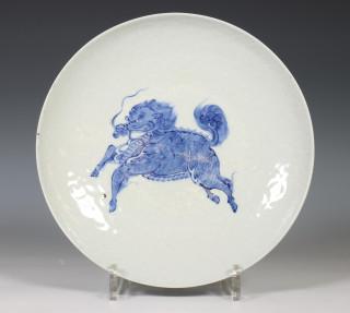 China, blauw-wit porseleinen 'qilin' bord, 19e eeuw,