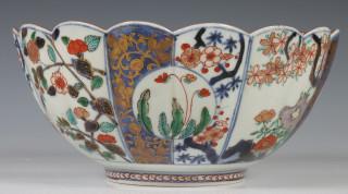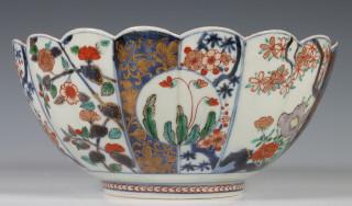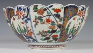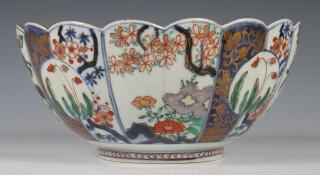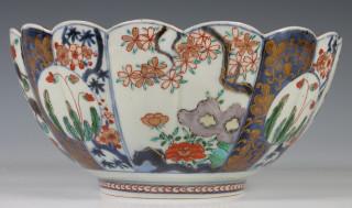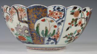 Japan, Imari porcelain chrysanthemum-shaped bowl, Edo period, early 18th century, decorated and modelled with chrysanthemum and flower panels, provenance: Dutch private collection