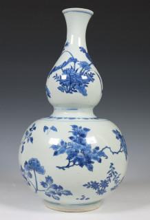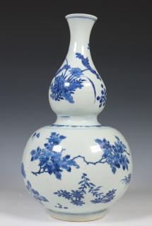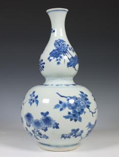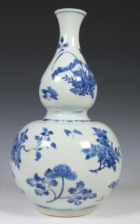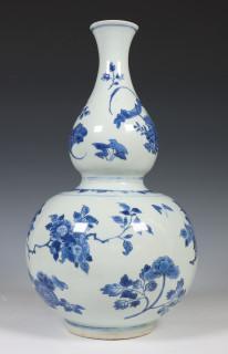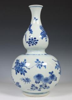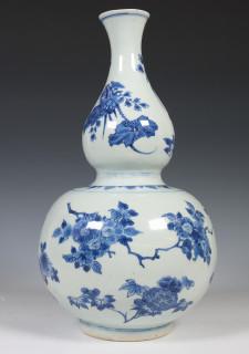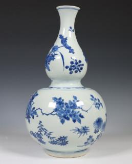 China, blauw-wit porseleinen 'Transition' kalebasvaas, mid-17e eeuw,