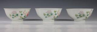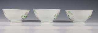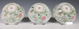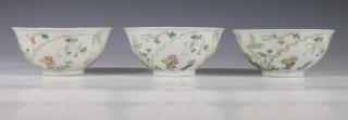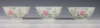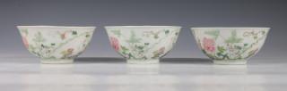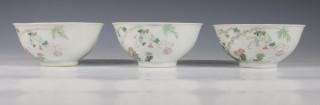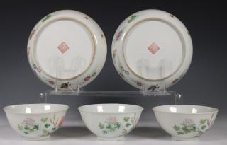 China, een set van drie famille rose porseleinen kommen en een paar borden, 20e eeuw,