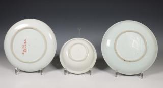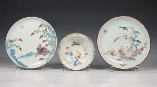 Japan, twee porseleinen Kakiemon-stijl borden en een kom, 18e-19e eeuw,