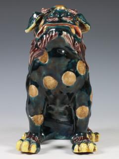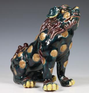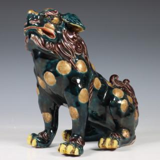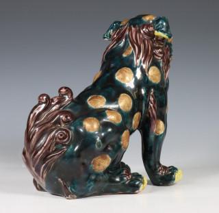China, Sancai-glazed and gilt buddhist lion, 20th century, modelled in seated position, provenance: Dutch private collection