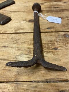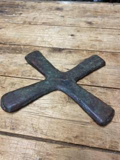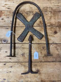 D.R. Congo, Nkutshu, U-shaped copper currency, a Luba Katanga cross copper currency and a Yoruba iron phallic shaped cult object