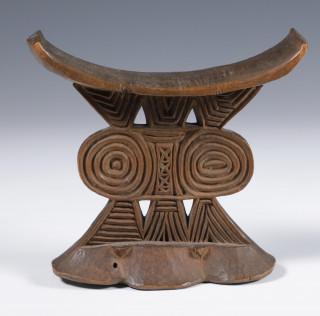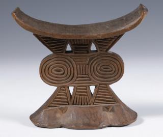 Zimbabwe, Shona, headrest, carved with geometric lines and partly openworked