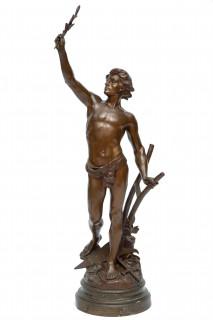 Eduard Drouot (1859-1945), bruin gepatineerd bronzen sculptuur 'Pax Labor', 19e eeuw.