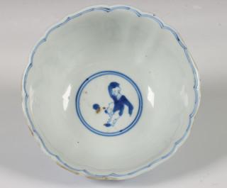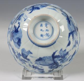 China, blauw-wit porseleinen geschulpt kommetje, Kangxi,