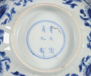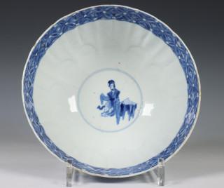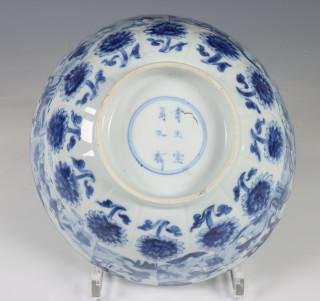 China, blauw-wit porseleinen gemodelleerde kom, Kangxi,