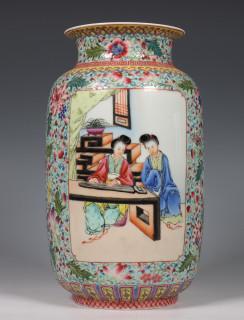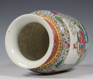 China, famille rose porseleinen lampionvormige vaas, 20e eeuw,
