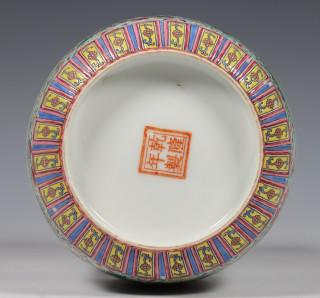 gedecoreerd met figurenpanelen op een turquoise ondergrond gedecoreerd met bloemen, met apocrief Qianlong merk