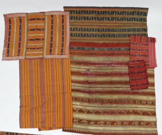 Collection of six Lampung textiles and a Batak slendang and a textile border.