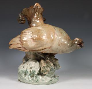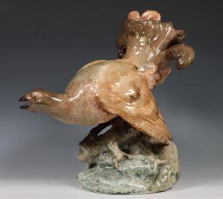 Korhoen op boomstronk. Gemerkt met blindmerk nummers (snavel gelijmd)