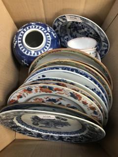 China, diverse blauw-wit en famille roze borden, vaas en kop en schotels, vnl. Qianlong