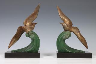 Frankrijk/België, paar gepatineerd metalen boekensteunen, ca. 1930.