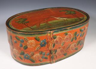 Duitsland, ovale polychroom geschilderde spanen doos, 19e eeuw.