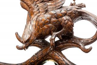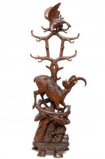 Grand Black Forest porte-manteau with sculptural scene of gems and golden eagle, two out from the 'Big five of the Alps'. 19th century.
