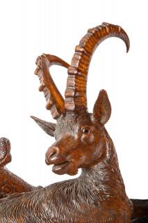 Zwitserland, kapitale sculpturale lindenhouten gestoken Schwarzwalder porte-manteau, 19e eeuw.