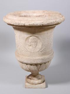 Frankrijk, wit marmeren gekapte tuinvaas, ca. 1800.