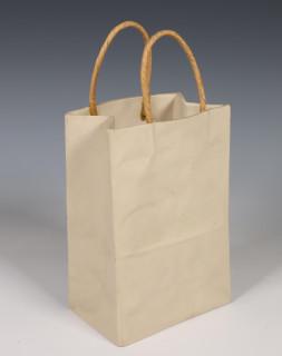Uitgevoerd als papieren draagtas met gedraaid papieren hengsels. Onderzijde gemerkt Harvey Craft Incorporated, Made in Canada.