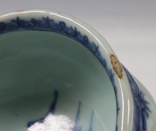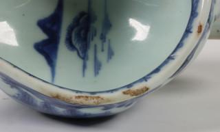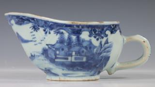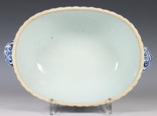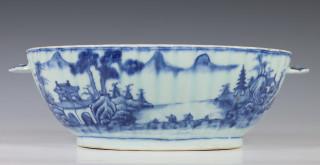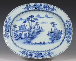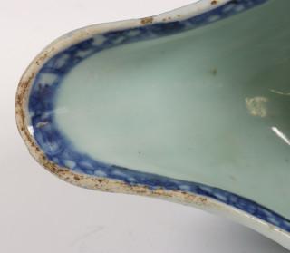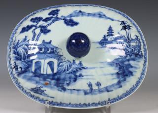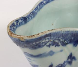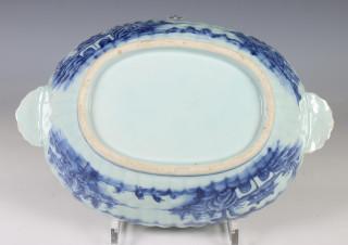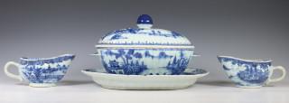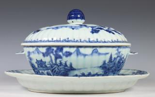 met decor van bergmeer, bestaande uit: dekschaal, dienschaal en paar sauskommen (alle fritting, schaal schilfer)