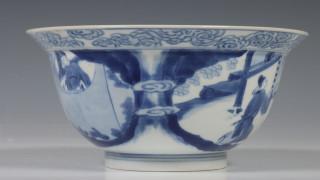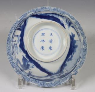 China, blauw-wit porseleinen kom, Kanxgi merk en periode,