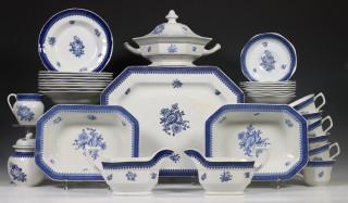 Bestaande uit dekschaal, vier schalen, twee sauskommen, melkkan, suikerpot, tien koppen, negen schoteltjes en negen borden.