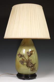 Porseleinen schemerlamp, faux onyx decoratie met koperen bloemornament.