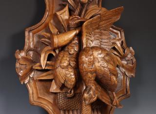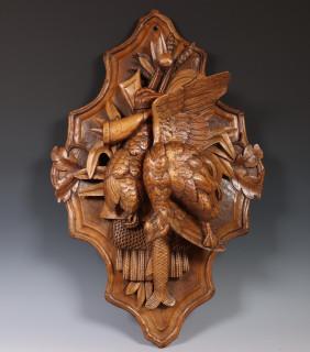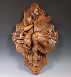 Schwarzwald wall plaque with hunting decoration, ca. 1900.
